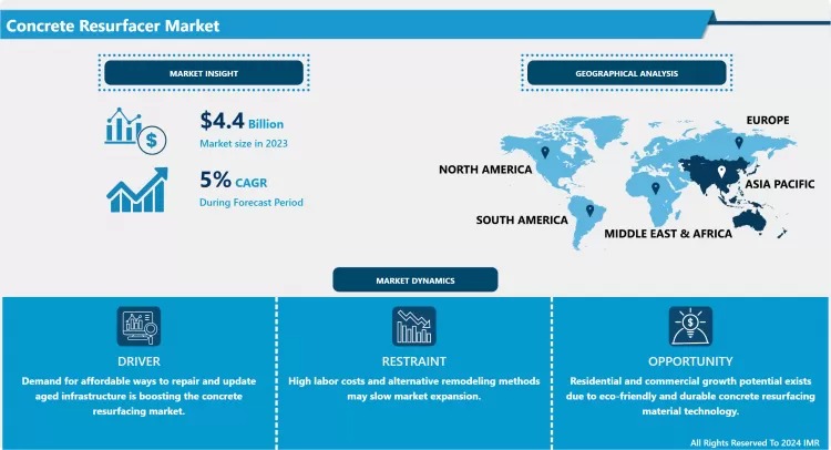 “According to a new report published by Introspective Market Research, Concrete Resurfacer Market by Type, Application, and End Use, The Global Concrete Resurfacer Market Size Was Valued at USD 4.4 Billion in 2023 and is Projected to Reach USD 6.5 Billion by 2032, Growing at a CAGR of 5% from 2024–2032.”
